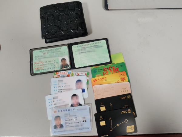 10月4日凌晨1點多,技防分公司夜間巡查人員在中國銀行永明路支行自助ATM機巡查時,發(fā)現一個錢包,經過檢查,錢包內有身份證、駕駛證、港澳通行證及多張銀行卡等,巡查人員立即上報中國銀行值班人員,然后將錢包交到監(jiān)控中心保管。