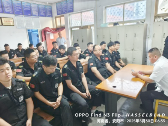 會(huì)議強(qiáng)調(diào),一是全面學(xué)習(xí)公司文件“關(guān)于做好2025年端午節(jié)放假和安全保衛(wèi)工作的通知”,做到放假不放制度。二是強(qiáng)化槍彈管理,節(jié)前開(kāi)展槍彈安全排查,槍彈監(jiān)督安全員要時(shí)刻做好監(jiān)督,槍彈領(lǐng)取交接臺(tái)賬要填寫規(guī)范,嚴(yán)格遵守守押操作規(guī)程。三是嚴(yán)格杜絕酒后上崗,做好每日酒精測(cè)試工作。要求著裝規(guī)范和符號(hào)齊全,時(shí)刻注意工作形象。四是節(jié)日期間車輛增多,要求所有司機(jī)文明駕駛,減速慢行,尤其是鄉(xiāng)間交叉路口、學(xué)校和旅游區(qū)附近,提高工作責(zé)任心,謹(jǐn)慎駕駛。