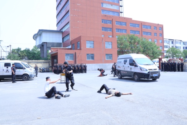 此次練兵考核項(xiàng)目主要包括隊(duì)列、交通指揮、文明禮儀崗、理論測(cè)試、守押防搶劫預(yù)案與輪胎更換、人防校園防暴預(yù)案及銀行應(yīng)急預(yù)案、消防知識(shí)問答與實(shí)際操作等科目??己诉^程中,人防分公司全體隊(duì)員精神飽滿、隊(duì)列整齊、紀(jì)律嚴(yán)明;特保大隊(duì)參訓(xùn)率較高、科目完整、士氣振奮;守押分公司各大隊(duì)基礎(chǔ)科目扎實(shí)沉穩(wěn)、精湛成熟、指揮標(biāo)準(zhǔn)、動(dòng)作規(guī)范,尤其是創(chuàng)新科目刺殺操動(dòng)作剛勁、氣勢(shì)雄渾,讓人耳目一新。