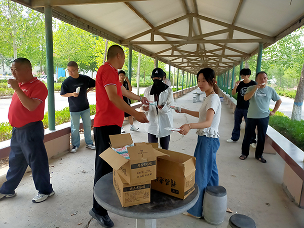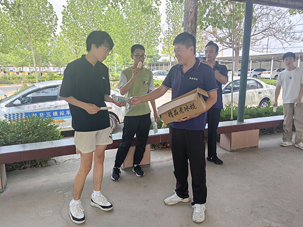 一是積極準(zhǔn)備貼心物資,筑牢防暑“安全線”。在訓(xùn)練場、考場候考大廳、待考通道、考前集合點(diǎn)統(tǒng)一配備藿香正氣水、風(fēng)油精、清涼油等防暑藥品,方便考生按需取用。在高溫時(shí)段,公司、駕校領(lǐng)導(dǎo)班子帶領(lǐng)工作人員,向堅(jiān)守在工作崗位的一線教練、職工、安全員及考試和訓(xùn)練學(xué)員等發(fā)放“老冰棍”,為大家解暑降溫。