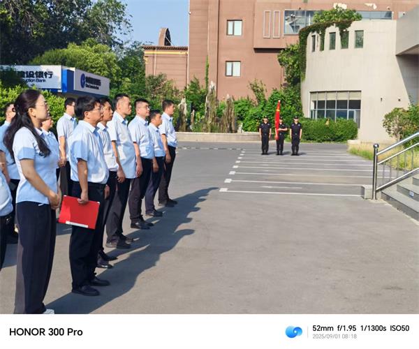 升旗過程中,公司派往的三名護(hù)旗手著裝規(guī)范、動作標(biāo)準(zhǔn)、一氣呵成,完美展現(xiàn)出洹河保安公司良好形象。