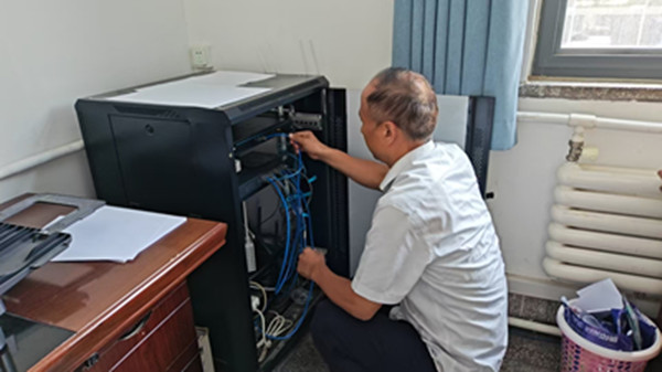 去年夏天,公司網絡系統突然全面癱瘓,鄧勝軍把剛打好的午飯放到辦公室,拎起工具包就沖向二樓機房。排查、跳線、重啟、驗證,他像“人形掃描儀”一樣在1至5樓來回穿梭。2小時后,數據恢復,系統滿血復活,他卻倚著墻累得不想說話不想動彈。同事們都勸他,勞逸結合,注意身體,他卻說:“故障不過夜,網絡不斷線?!?
